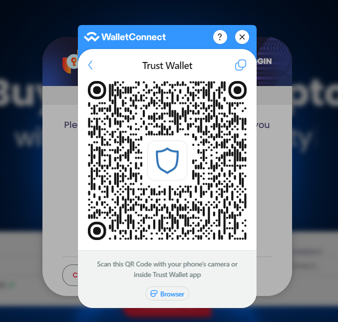 - Open your mobile wallet that supports WalletConnect (e.g., Trust Wallet).